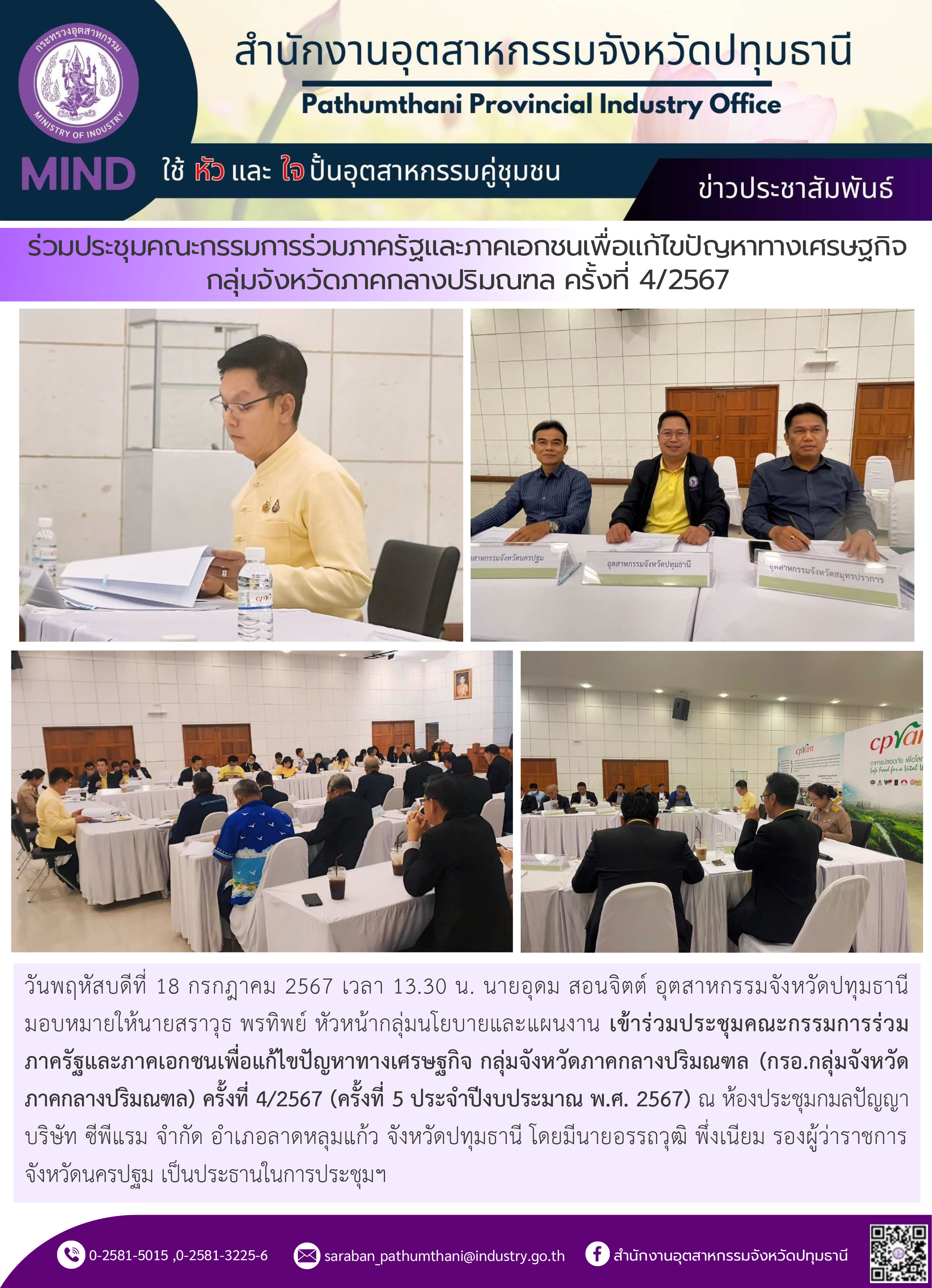 ร่วมประชุมคณะกรรมการร่วมภาครัฐและภาคเอกชนเพื่อแก้ไขปัญหาทางเศรษฐกิจ กลุ่มจังหวัดภาคกลางปริมณฑล ครั้งที่ 4/2567