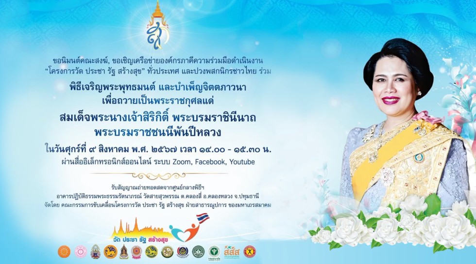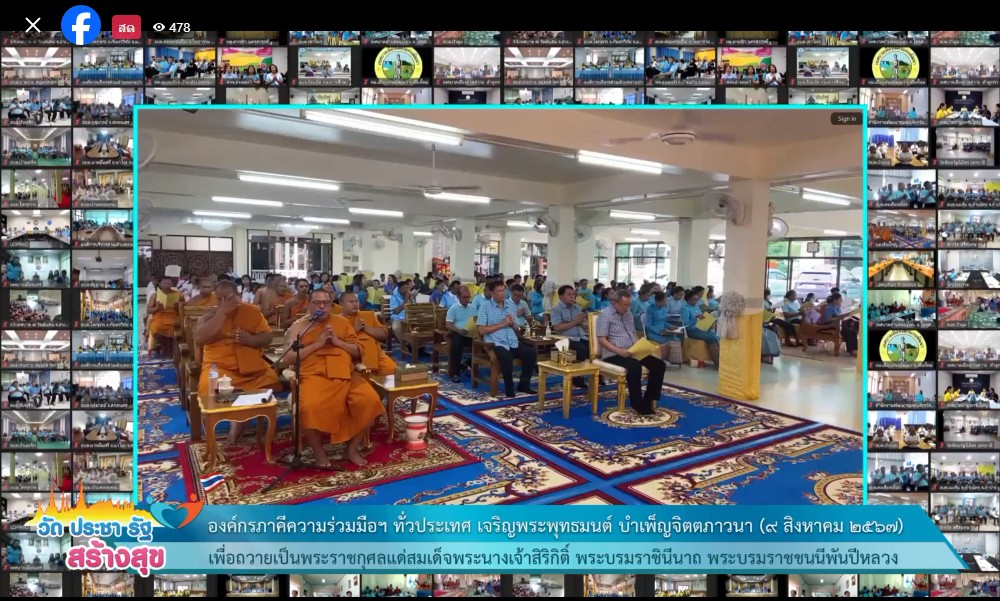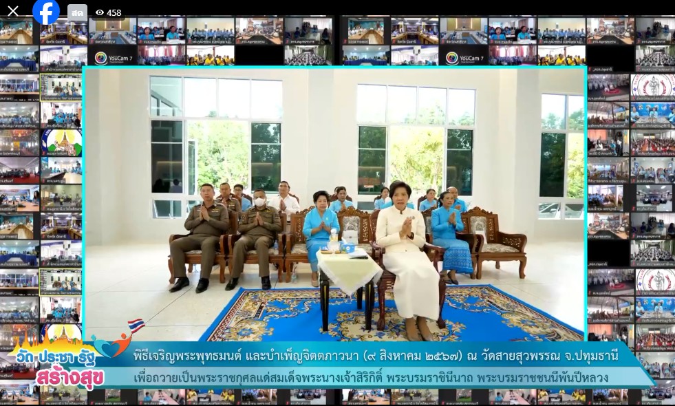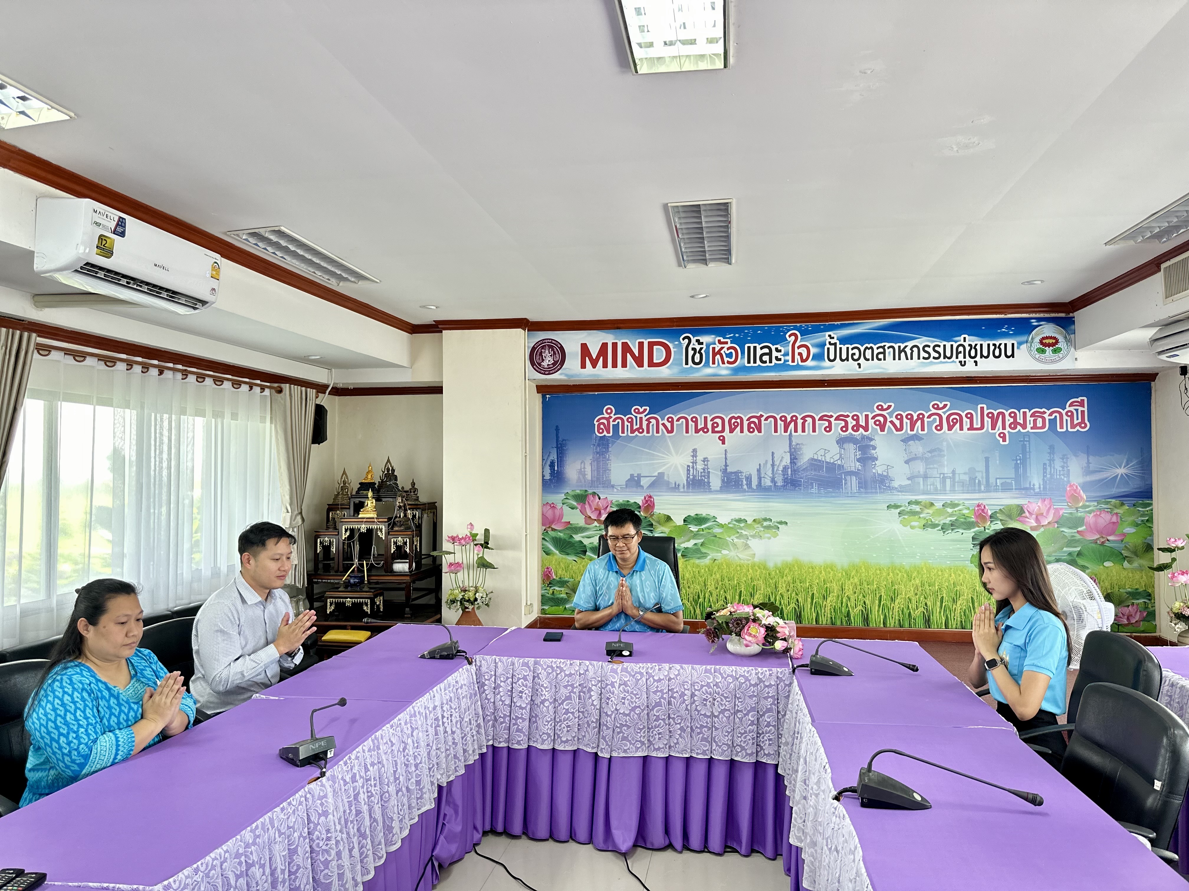 วันศุกร์ที่ 9 สิงหาคม 2567 เวลา 14.00 น. นายอุดม สอนจิตต์ อุตสาหกรรมจังหวัดปทุมธานี มอบหมายให้เจ้าหน้าที่สำนักงานอุตสาหกรรมจังหวัดปทุมธานี เข้าร่วมงานพิธีเจริญพระพุทธมนต์และบำเพ็ญจิตตภาวนา เพื่อถวายเป็นพระราชกุศลแต่สมเด็จพระนางเจ้าสิริกิติ์ พระบรมราชินีนาถพระบรมราชชนนีพันปีหลวง เนื่องในโอกาสวันเฉลิมพระชนมพรรษา และวันแม่แห่งชาติ รับสัญญาณถ่ายทอดสดจากศูนย์กลางพิธีฯ อาคารปฏิบัติธรรมพระธรรมรัตนาภรณ์ วัดสายสุวพรรณ ตำบลคลองสี่ อำเภอคลองหลวง จังหวัดปทุมธานี ผ่านทางอิเล็กทรอนิกส์ออนไลน์ (Zoom Cloud Meeting) ณ ห้องประชุมชั้น 3 สำนักงานอุตสาหกรรมจังหวัดปทุมธานี โดยมี นางสาวเอกรัตน์ นาคาคง ผู้ตรวจราชการกระทรวงมหาดไทย เป็นประธานในพิธีฯ