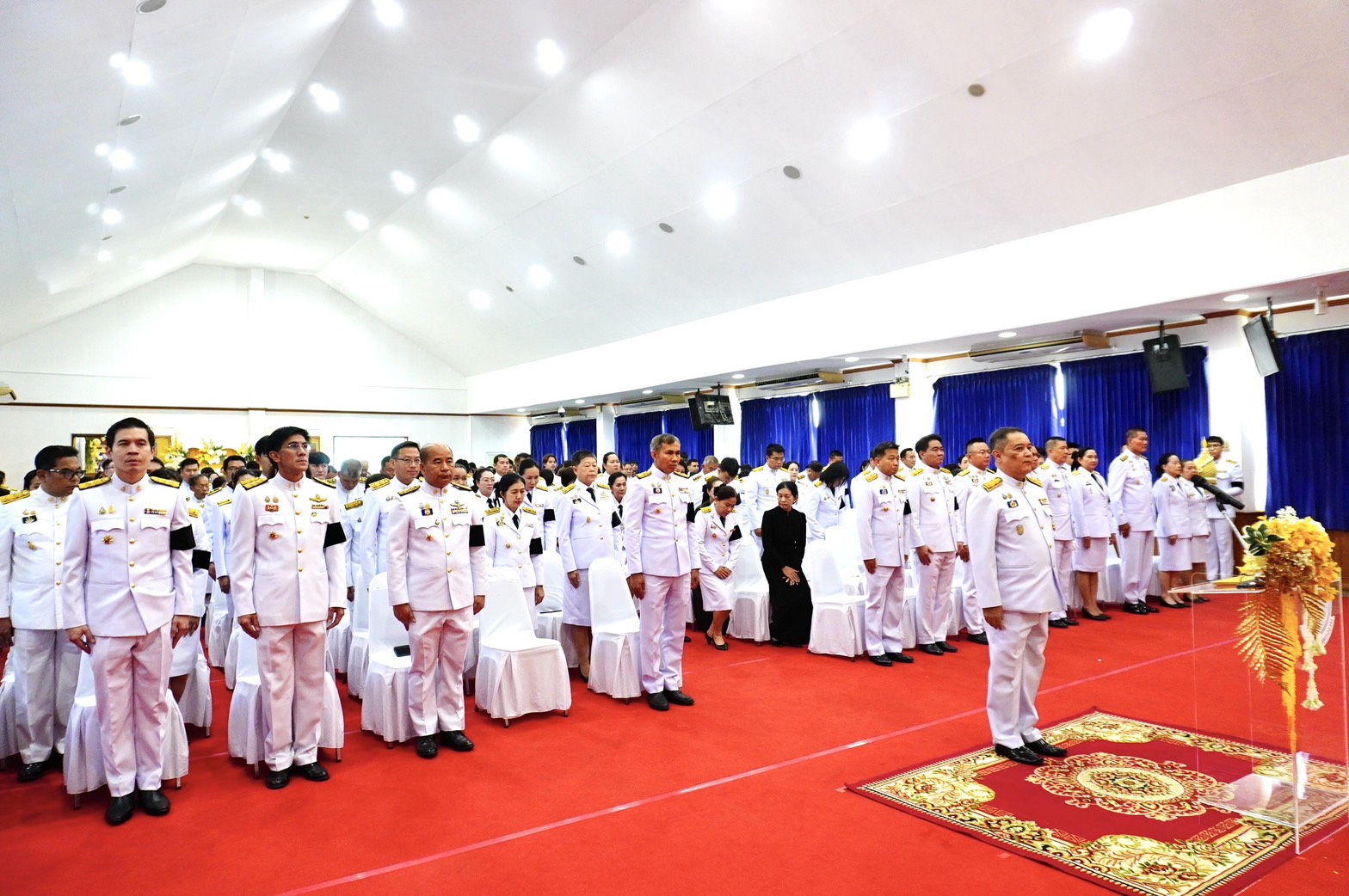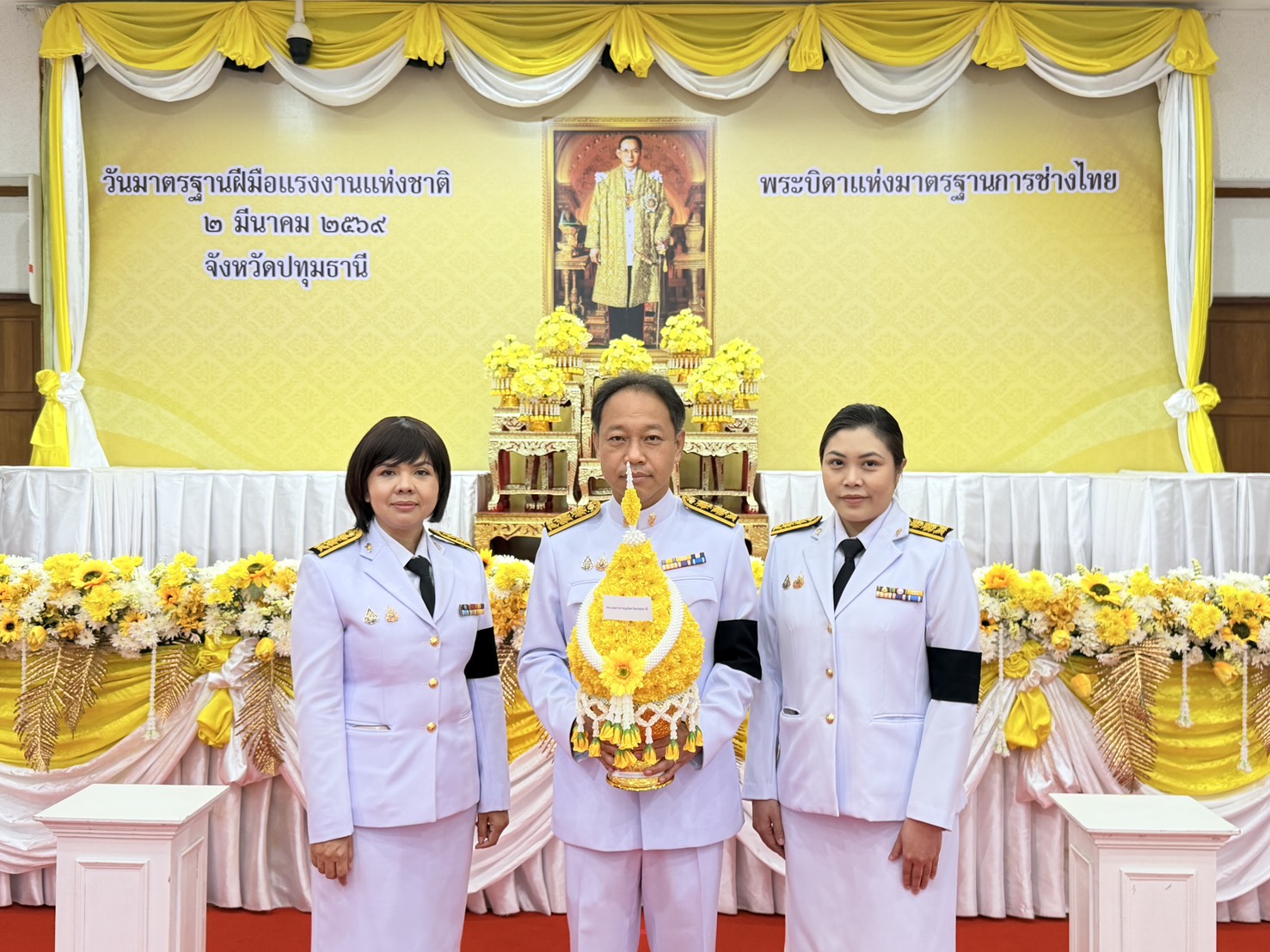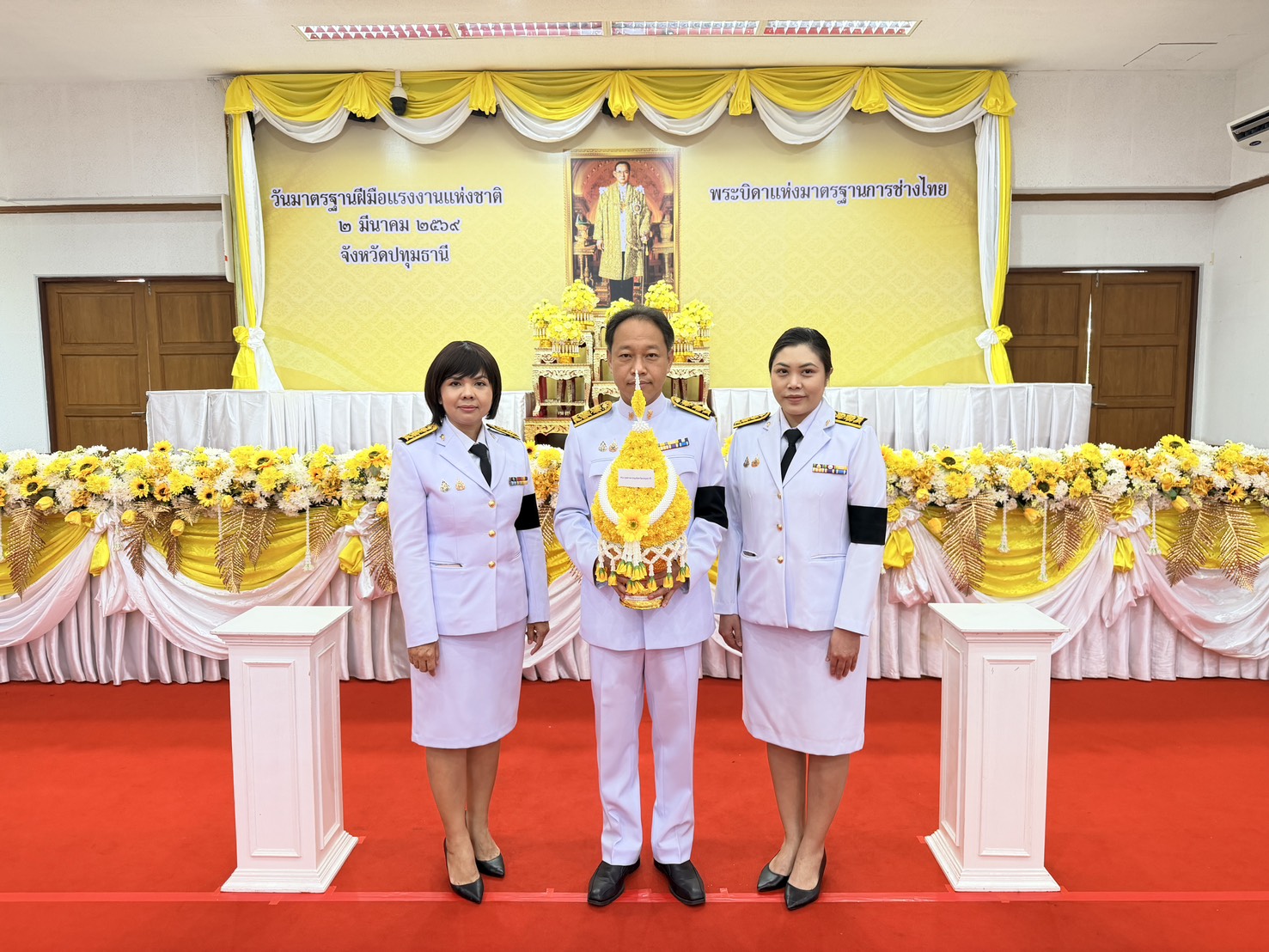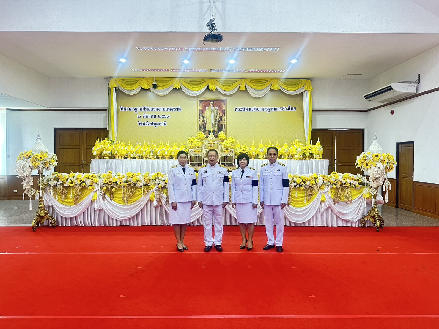 วันจันทร์ที่ 2 มีนาคม 2569 เวลา 08.00 น. นายอรรณุวัฒน์ วัฒนวรรณ อุตสาหกรรมจังหวัดปทุมธานี มอบหมายให้นางสาวลัดดาวัลย์ ปานมณี นักวิเคราะห์นโยบายและแผนชำนาญการพิเศษ นายเอกลักษณ์ เพชรดี วิศวกรชำนาญการ และนางสาวเบญจพร คลังมี นักวิเคราะห์นโยบายและแผนชำนาญการ พร้อมด้วยเจ้าหน้าที่ฯ เข้าร่วมพิธีวางพานพุ่มดอกไม้ถวายสักการะแด่พระบาทสมเด็จพระบรมชนกาธิเบศร มหาภูมิพลอดุลยเดชมหาราช บรมนาถบพิตร “พระบิดาแห่งมาตรฐานช่างไทย” เพื่อเป็นการเทิดพระเกียรติแด่พระองค์ที่มีพระมหากรุณาธิคุณต่อปวงชนชาวไทยและทรงพระปรีชาสามารถด้านการช่าง ณ อาคารศาลารักษ์ปทุม ศาลากลางจังหวัดปทุมธานี โดยมี นายเอกวิทย์ มีเพียร ผู้ว่าราชการจังหวัดปทุมาธานี เป็นประธานในพิธี
