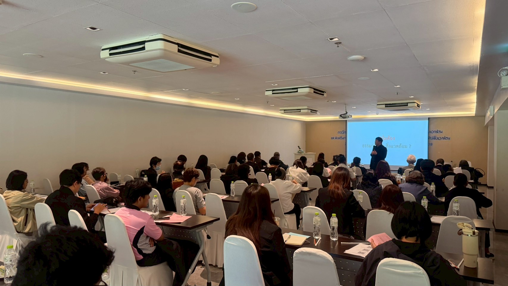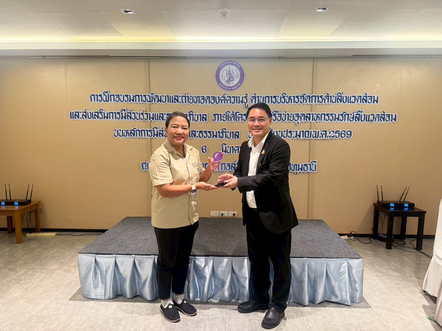 วันศุกร์ที่ 6 มีนาคม 2569 สำนักงานอุตสาหกรรมจังหวัดปทุมธานี ได้จัดการฝึกอบรมการพัฒนาและถ่ายทอดองค์ความรู้ด้านการบริหารจัดการด้านสิ่งแวดล้อม และส่งเสริมการมีส่วนร่วมและธรรมาภิบาล ภายใต้โครงการเครือข่ายอุตสาหกรรมรักษ์สิ่งแวดล้อมบนหลักการมีส่วนร่วมและธรรมาภิบาล ประจำปีงบประมาณ พ.ศ. 2569 พัฒนาองค์ความรู้การบริหารจัดการสิ่งแวดล้อมและส่งเสริมการประกอบการที่ดี คู่ชุมชนด้วยการสร้างความมีส่วนร่วม ส่งเสริมสถานประกอบการให้มีการดำเนินงานตามหลักธรรมาภิบาลสิ่งแวดล้อม พัฒนาเครือข่ายอุตสาหกรรม รักษ์สิ่งแวดล้อมเพื่อให้เกิดความร่วมมือด้านความรับผิดชอบต่อสังคมในระดับพื้นที่ มีเครือข่ายภาคประชาชน หน่วยงานราชการ และโรงงานอุตสาหกรรมในพื้นที่จังหวัดปทุมธานี เข้าร่วมกิจกรรมดังกล่าว จำนวน 53 คน ณ โรงแรม ทินิดี โฮเต็ล บางกอก กอล์ฟ คลับ จังหวัดปทุมธานี โดยมีนายอรรณุวัฒน์ วัฒนวรรณ อุตสาหกรรมจังหวัดปทุมธานี เป็นประธานเปิดการฝึกอบรมฯ