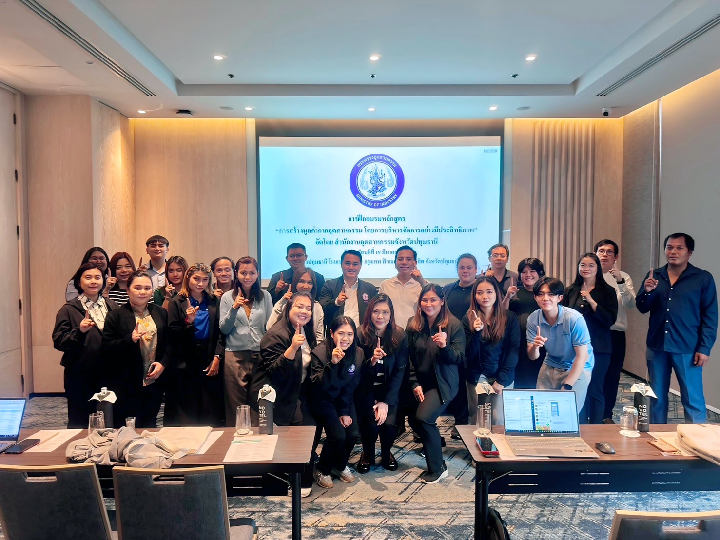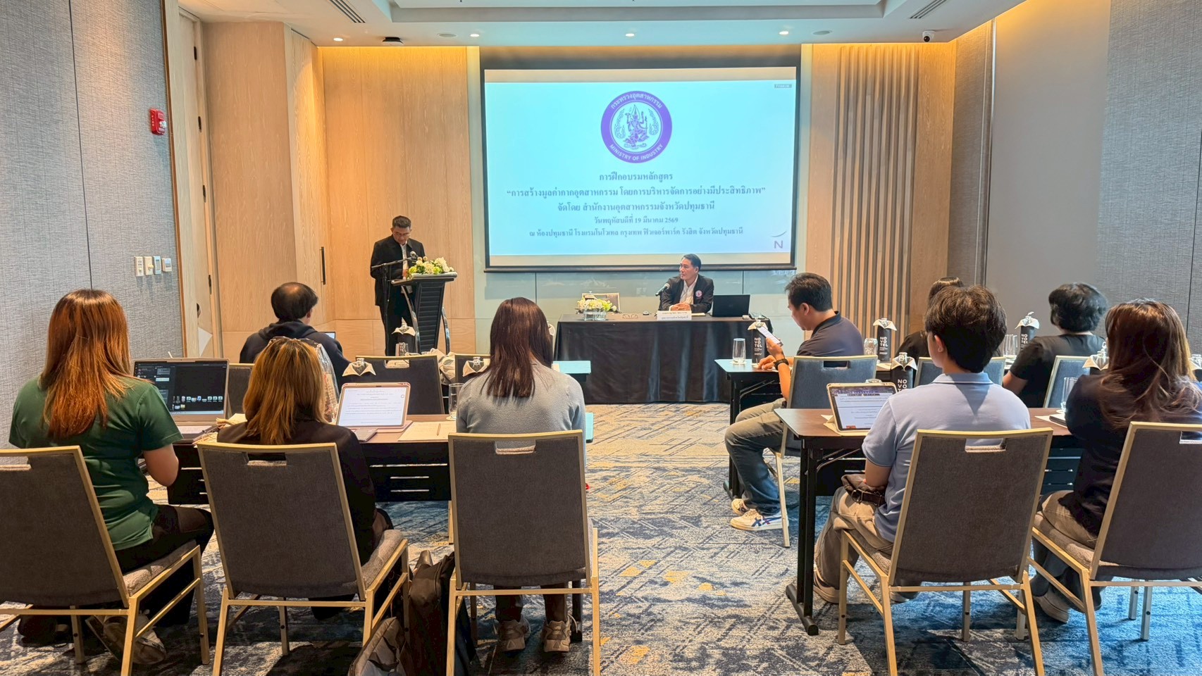 วันพฤหัสบดีที่ 19 มีนาคม 2569 นายอรรณุวัฒน์ วัฒนวรรณ อุตสาหกรรมจังหวัดปทุมธานี เป็นประธานในพิธีเปิดการฝึกอบรมหลักสูตร “การสร้างมูลค่ากากอุตสาหกรรม โดยการบริหารจัดการอย่างมีประสิทธิภาพ” ณ โรงแรมโนโวเทล กรุงเทพ ฟิวเจอร์พาร์ค รังสิต จังหวัดปทุมธานี โดยกิจกรรมดังกล่าวมีวัตถุประสงค์เพื่อส่งเสริมความรู้ ความเข้าใจในการจัดการกากอุตสาหกรรม ความเข้าใจเกี่ยวกับกฎหมายโรงงานที่เกี่ยวข้อง รวมถึงส่งเสริมให้โรงงานในพื้นที่ มีแนวทางการพัฒนาที่ยั่งยืน เปลี่ยนของเสียให้เป็นวัตถุดิบ และพลังงาน จัดการมลพิษอย่างมีประสิทธิภาพ โดยเน้นย้ำความสมดุลระหว่างอุตสาหกรรม ชุมชนและสิ่งแวดล้อมเพื่อความยั่งยืน โดยมีผู้เข้าร่วมอบรม จำนวน 20 ราย